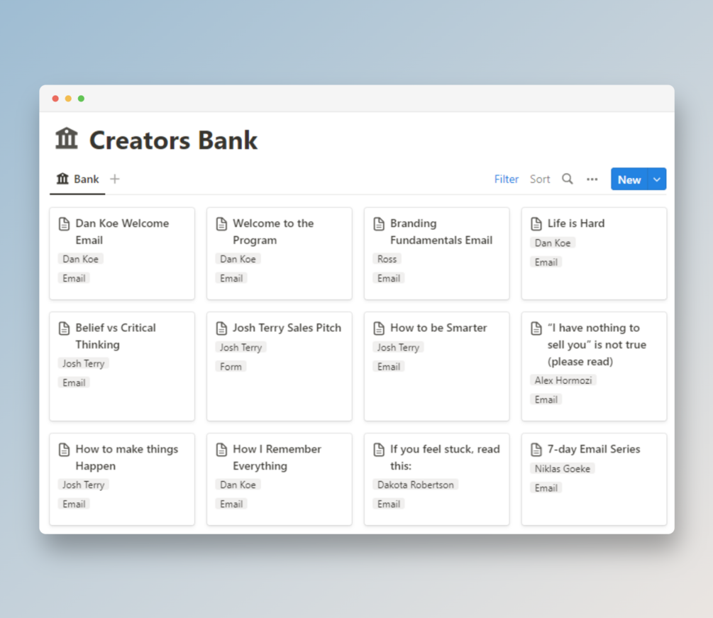 - My personal creators bank which you can use as a guide to inspire you